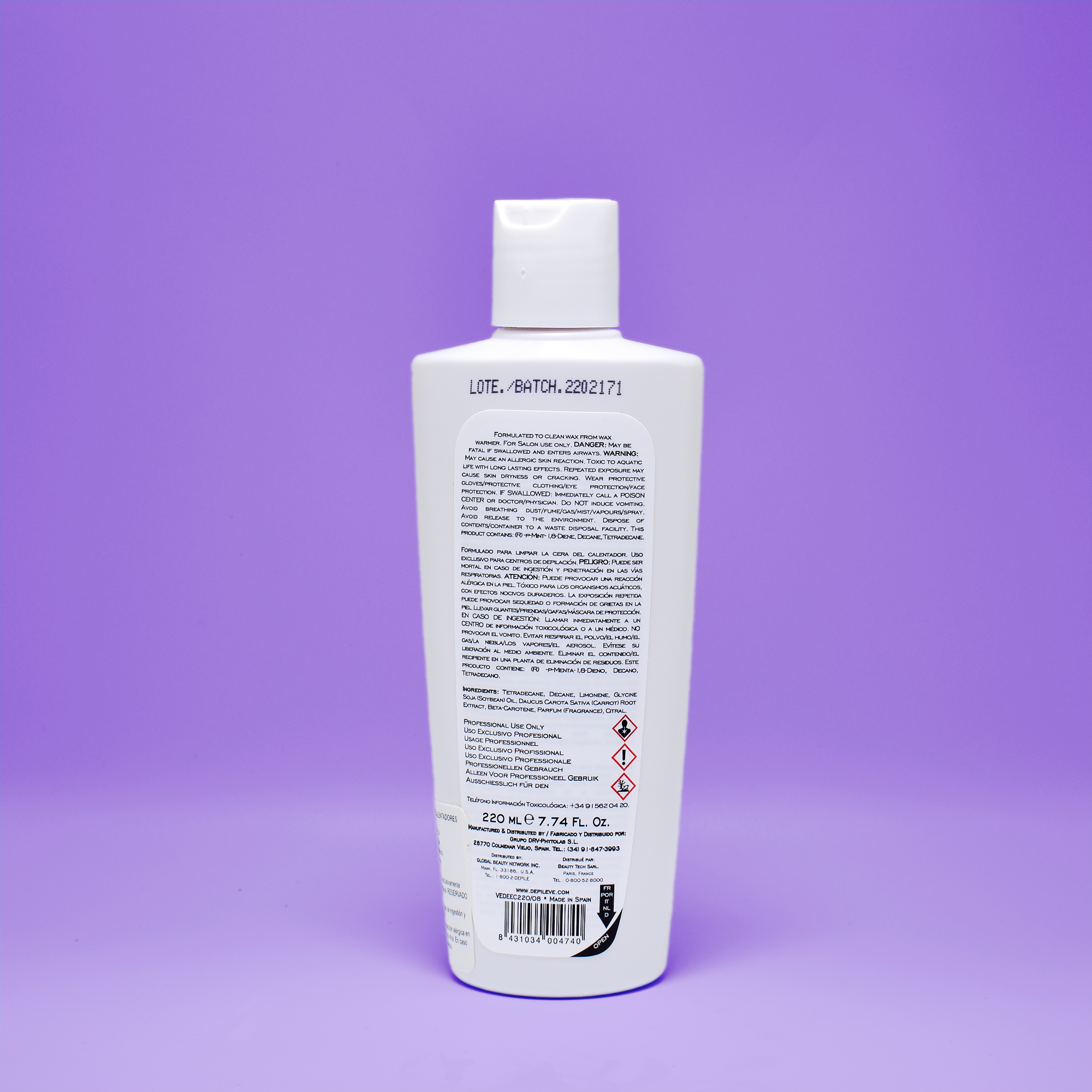 Limpiador a base de solvente con aroma a cítricos para eliminar fácilmente los residuos de cera de calentadores, carritos, pisos duros y encimeras. Deja una agradable fragancia a naranja.